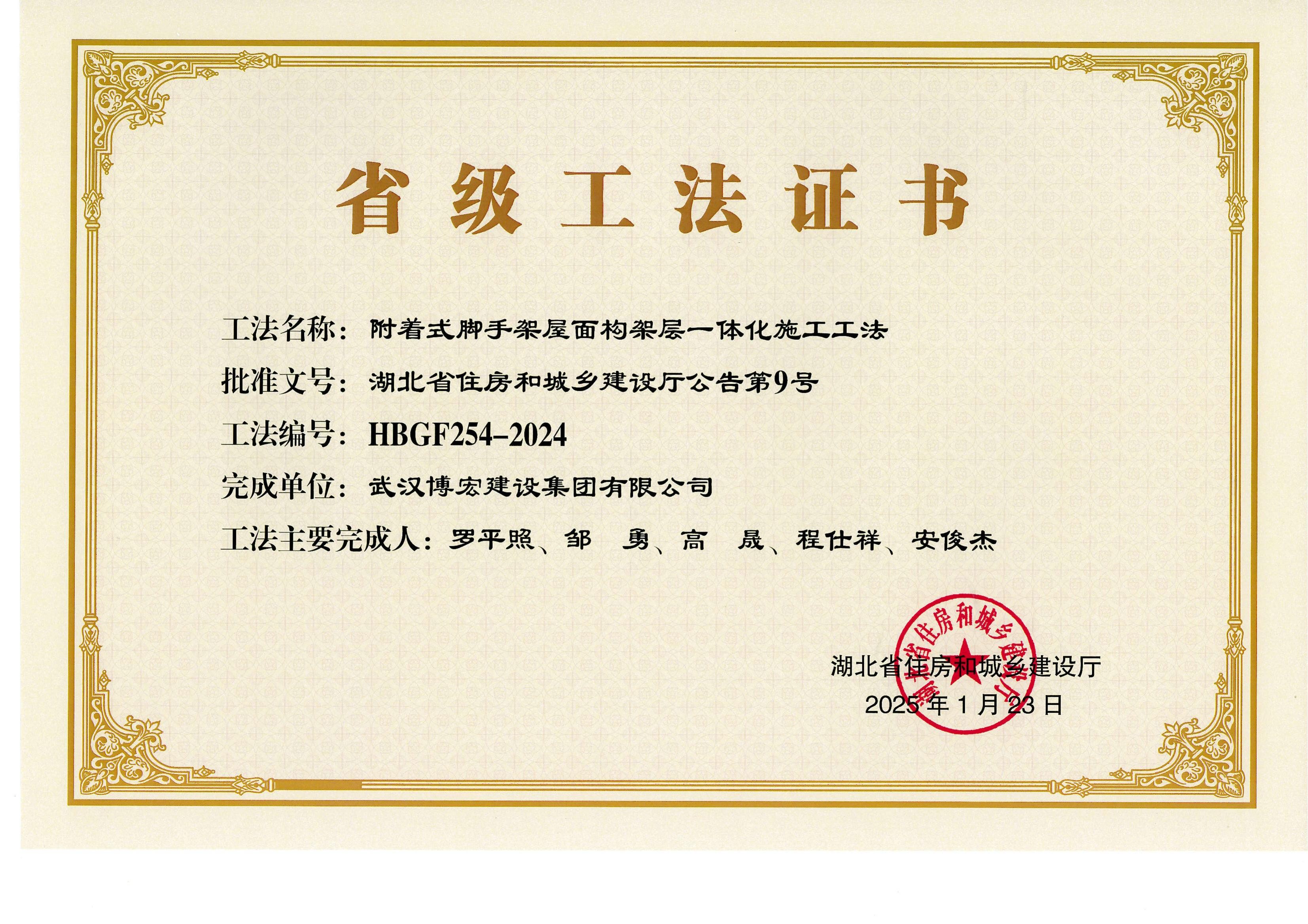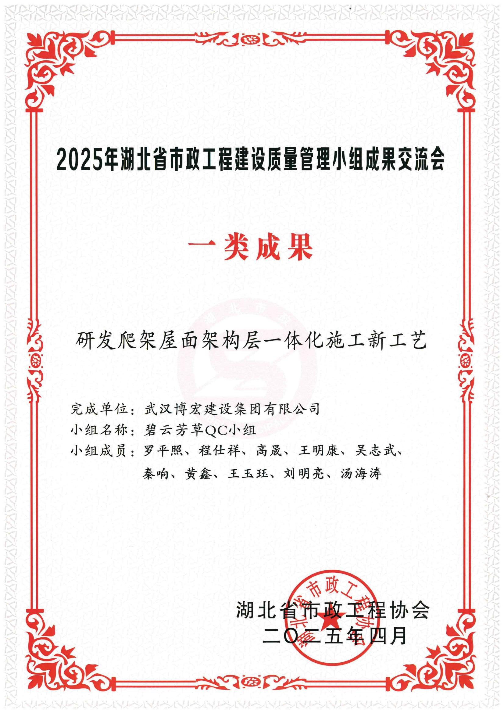 2025湖北省市政程協會-研發爬架屋面架構層一體化施工新工藝
