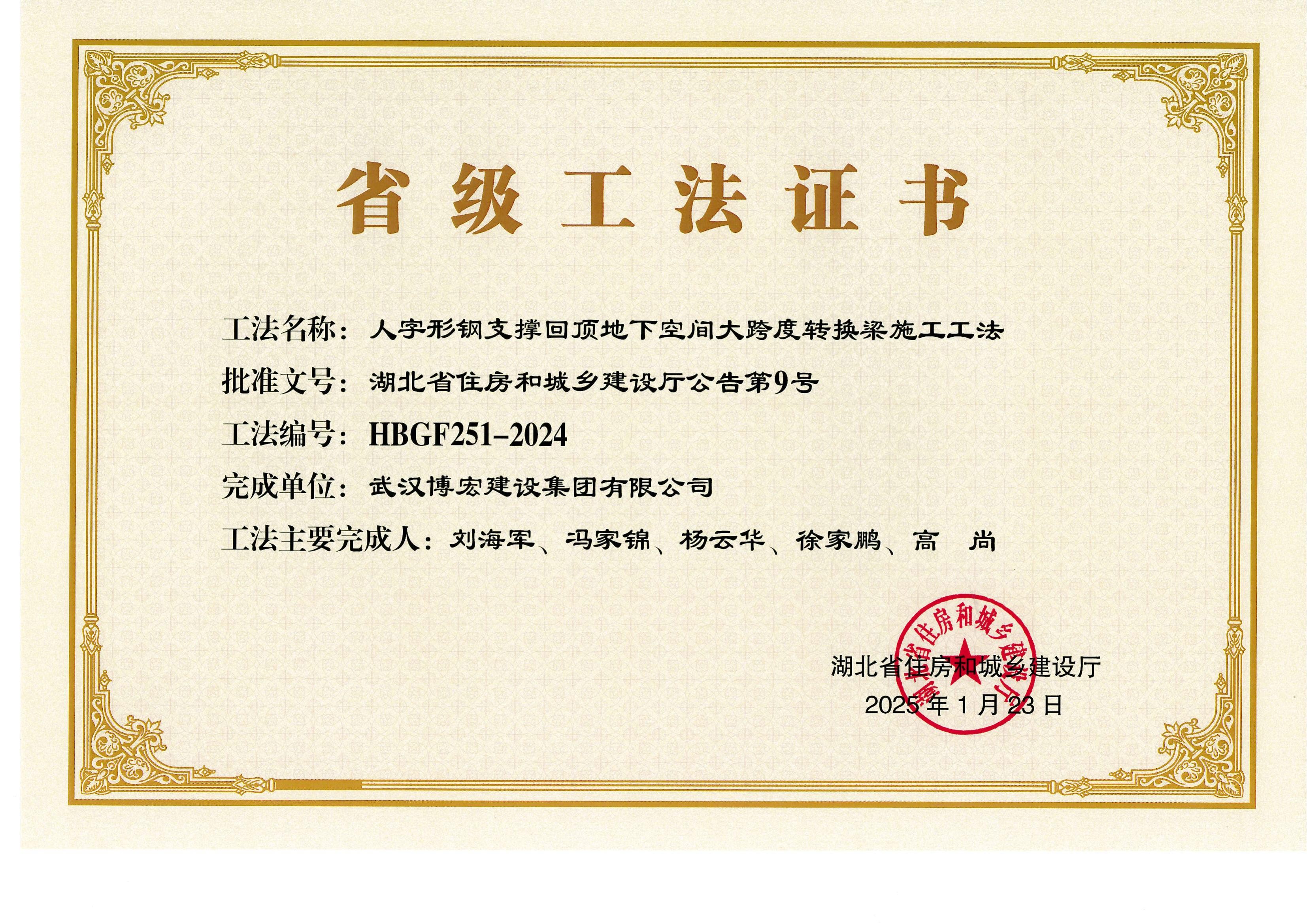 2025年湖北省住房和城鄉建設廳-人字形鋼支撐回頂地下空間大跨度轉換梁施工工法