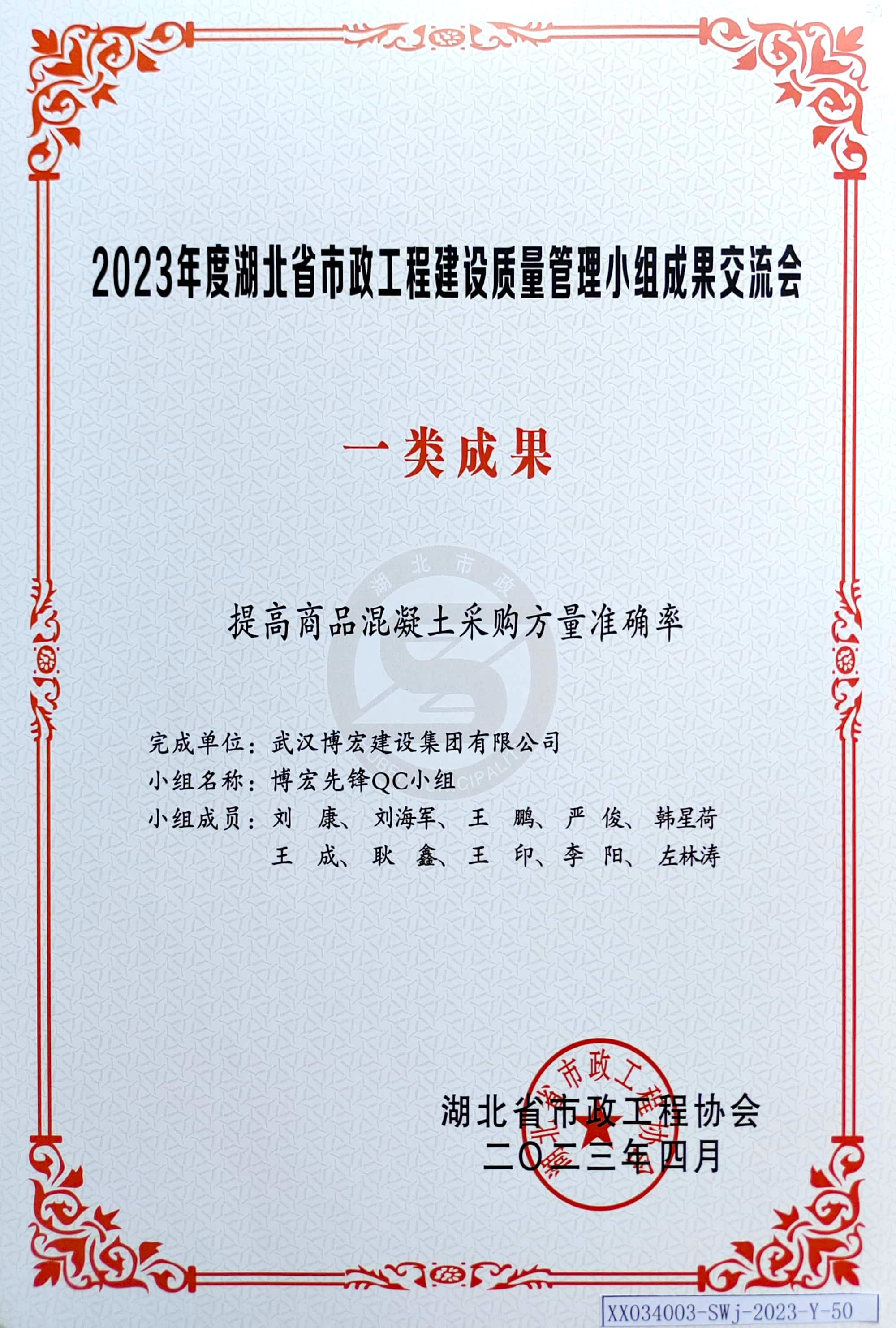 2023年度湖北省市政工程建設質量管理小組成果交流會-一類成果