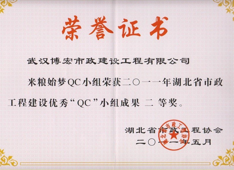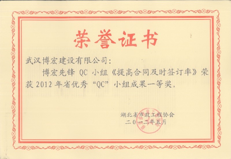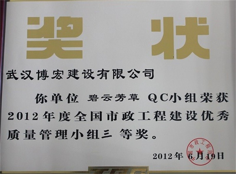 2012年度全國市政工程建設(shè)先進(jìn)質(zhì)量管理小組