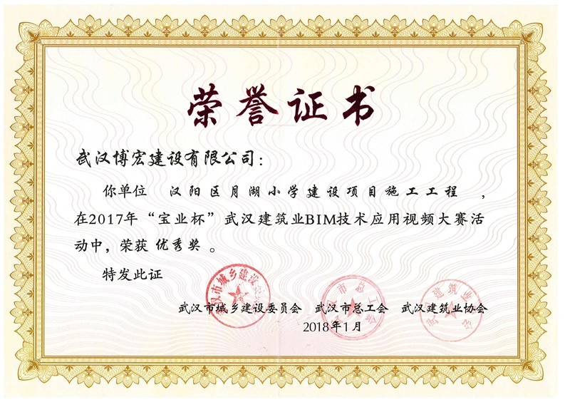 2017年度湖北省市政示范工程金獎(墨水湖南路道排)