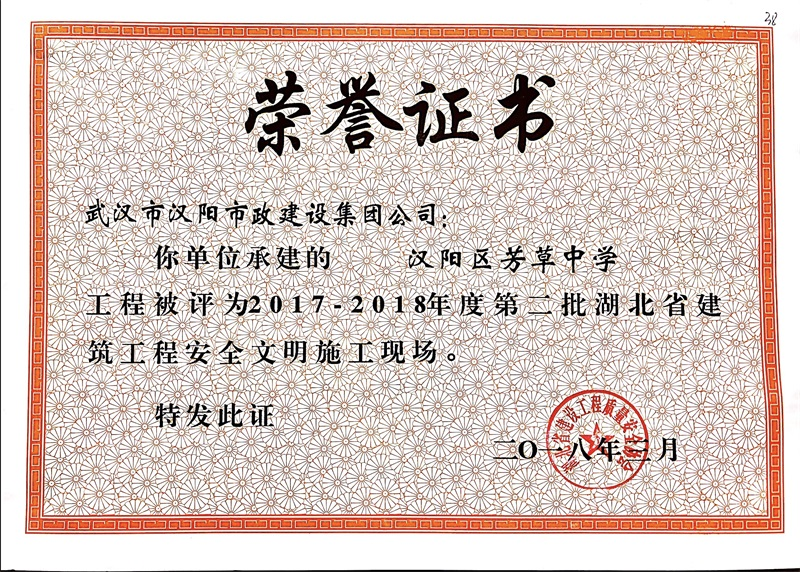2017-2018年度第二批湖北省建筑工程安全文明施工現場(漢陽區芳草中學)