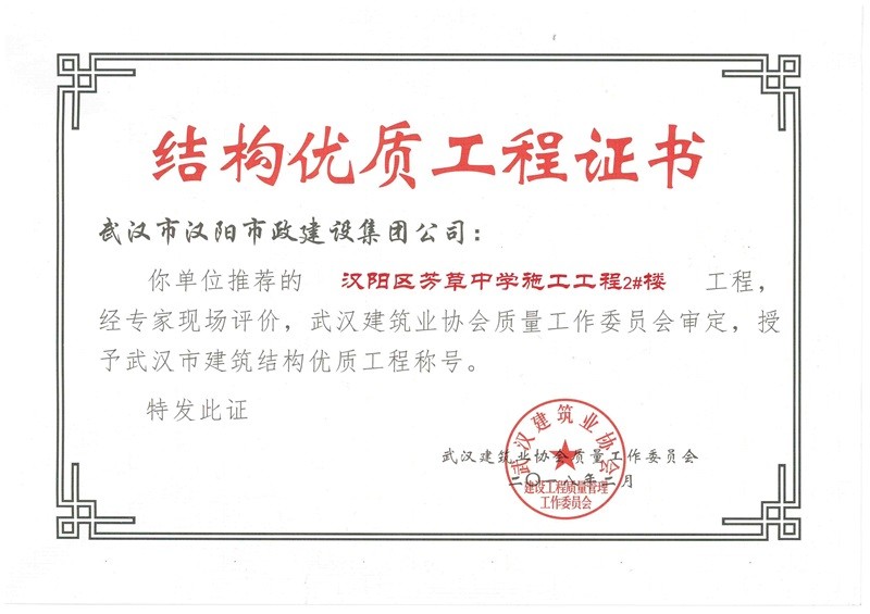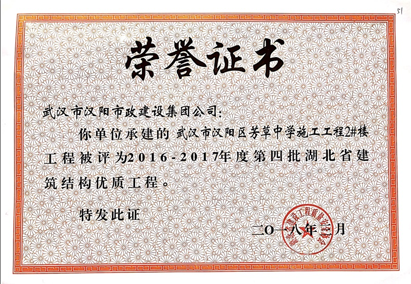 2016-2017年度第四批湖北省建筑結構工程(武漢市漢陽區芳草中學施工工程2#樓)