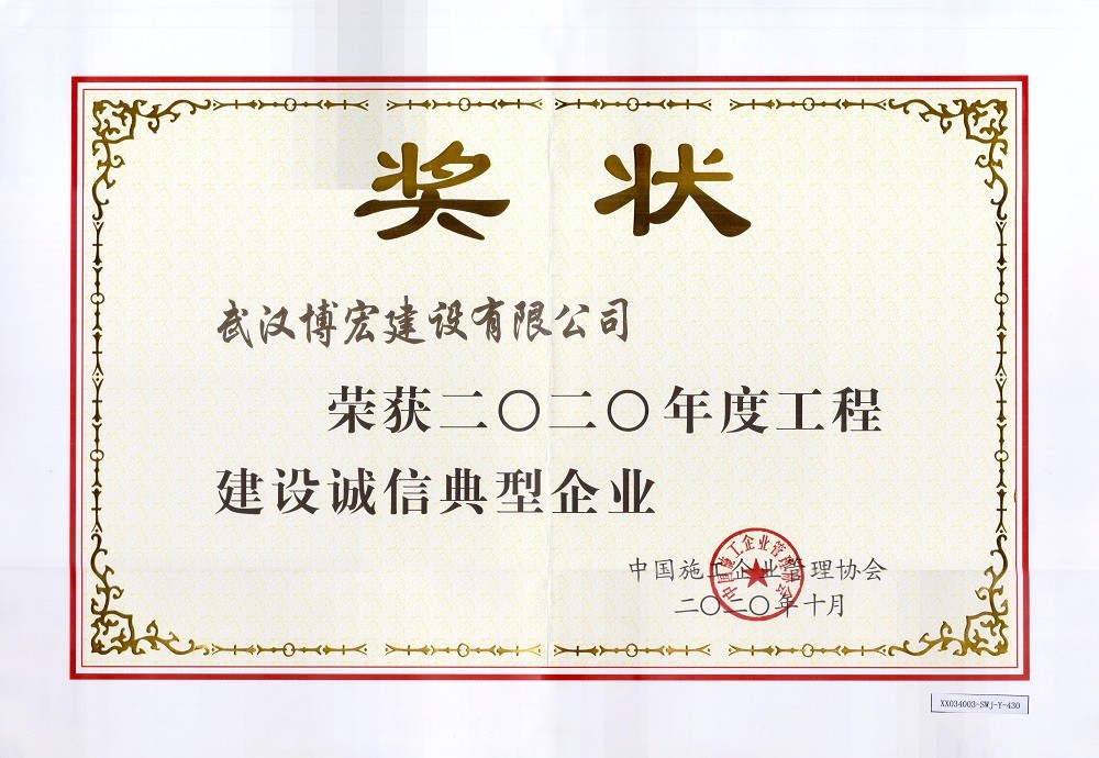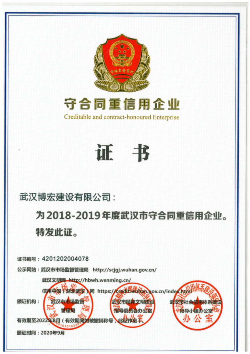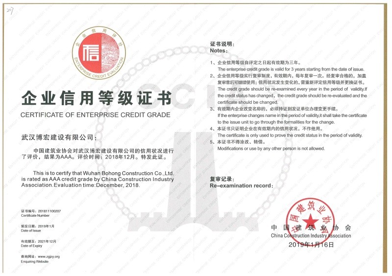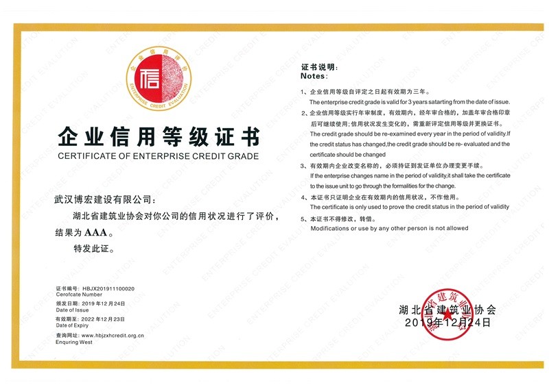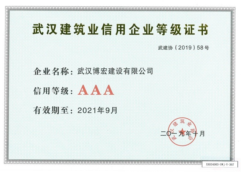 武漢建筑業信用企業等級證書