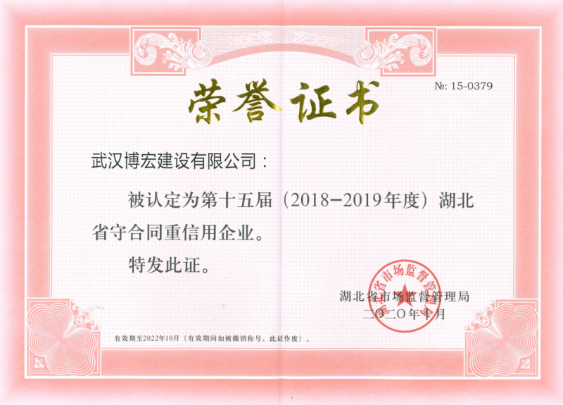 十五屆(2018-2019年度)湖北省守合同重信用企業