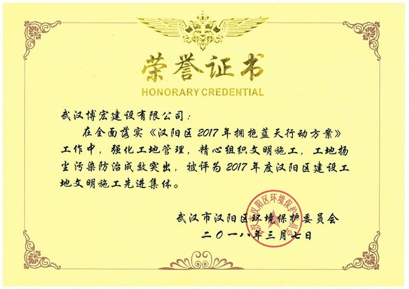 2017年度漢陽區建設工地文明施工先進集體