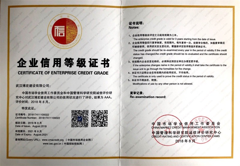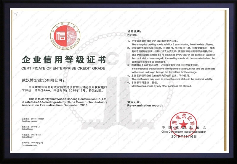 中國建筑協會3A信用等級證書(2019年1月)