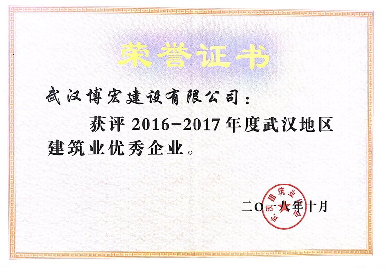 2016-2017年度武漢地區建筑業優秀企業