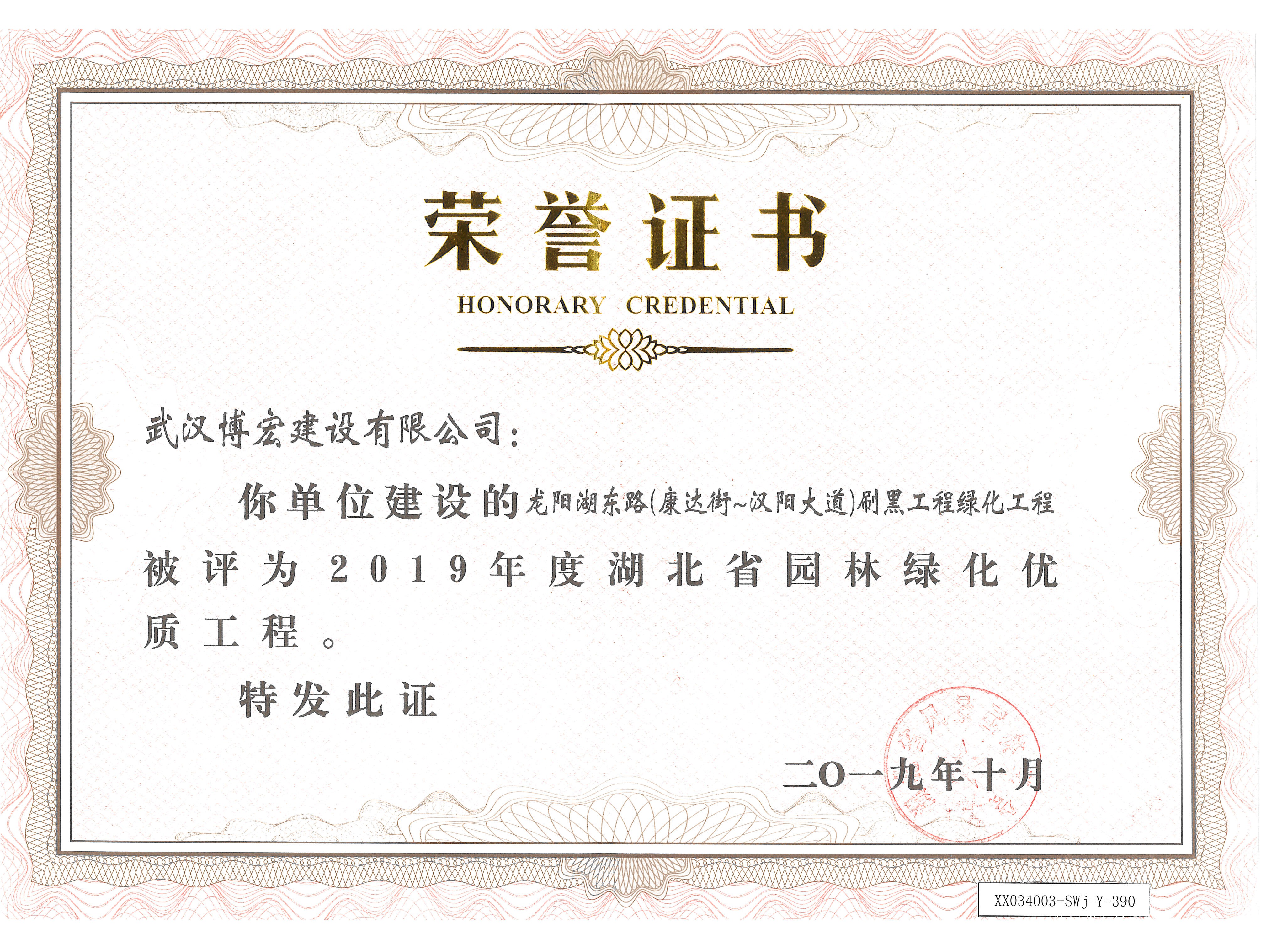 2019年度龍陽東路刷黑工程綠化工程湖北省園林綠化優質工程
