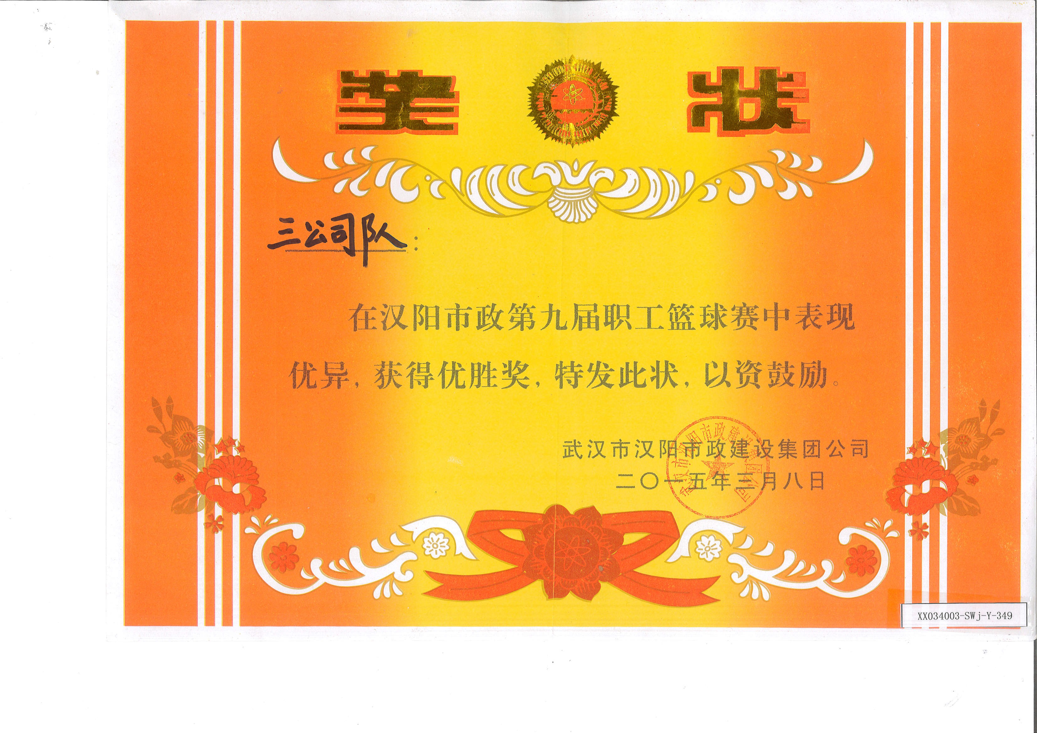 第九屆職工籃球優勝獎
