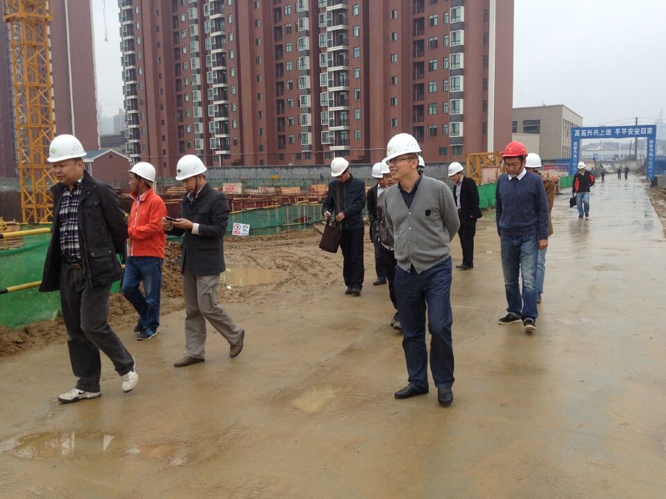 10月29日,武漢迎來了入秋以來最強降雨降溫天氣,上午10時細雨蒙蒙,集團公司領(lǐng)導虞志鵬總工、李震修副總工、集團各職能部門主要負責人及我公司錢濤總經(jīng)理、秦林副總經(jīng)理、梅浩副總工等一行十幾人,冒雨蒞臨黃陂萬基國際廣場二期工程參觀并了解工程進展情況,對工程中存在的問題作出指導意見。