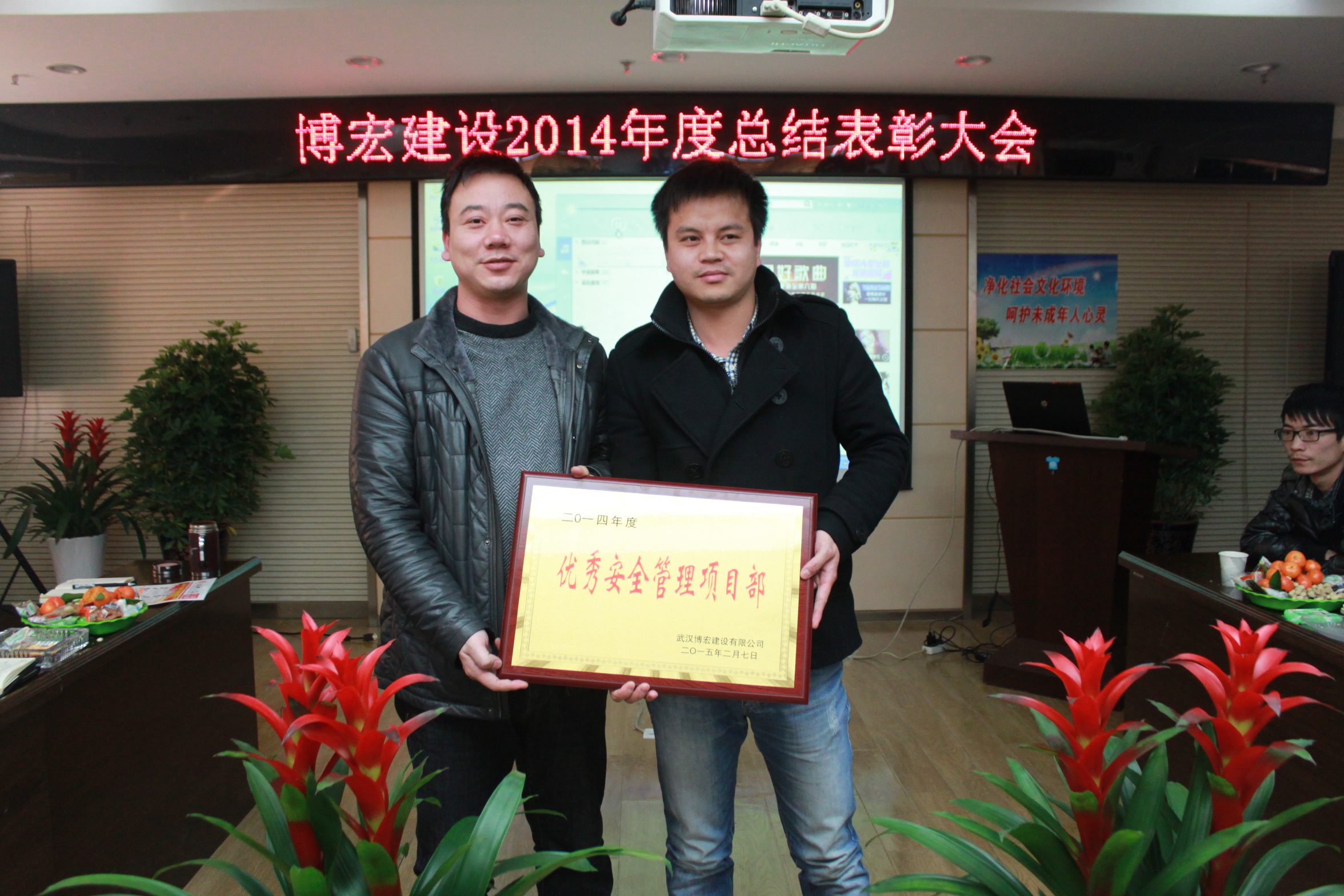 為表彰先進(jìn)、激勵后進(jìn),提高員工工作積極性,“武漢博宏建設(shè)有限公司2014年度總結(jié)表彰大會”于2015年2月7日在公司大會議室隆重舉行,會議認(rèn)真總結(jié)了2014年公司各項(xiàng)工作,同時表彰了2014年度為公司發(fā)展作出突出貢獻(xiàn)的“優(yōu)秀員工”和“優(yōu)秀項(xiàng)目部”代表。公司支部成員、總助、總工、部門負(fù)責(zé)人、項(xiàng)目經(jīng)理、部門主管及受表彰的集體和個人參加了此次大會。
