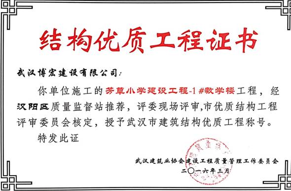 熱烈祝賀武漢博宏建設(shè)有限公司榮獲2015年武漢市建筑結(jié)構(gòu)優(yōu)質(zhì)獎(jiǎng)