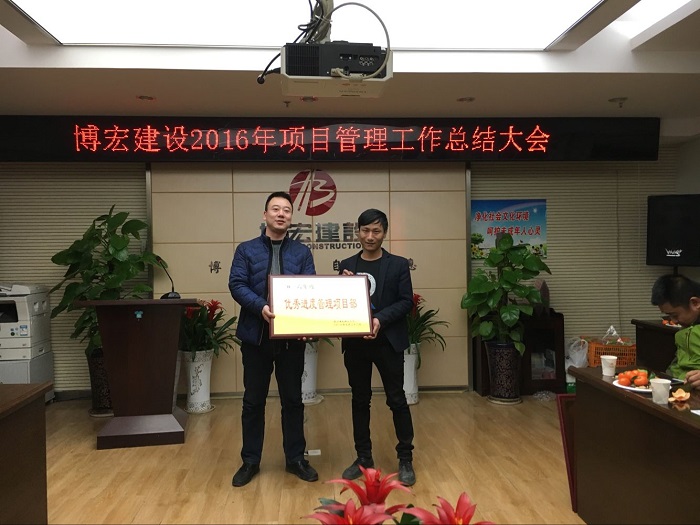 在表彰環節,公司為在2016年度成本、進度、質量、安全及技術等方面表現突出的先進集體和個人頒獎。會上共有4個項目部受到表彰收獲了五項大獎,21名員工授予了“優秀員工”稱號,在熱烈的掌聲和歡呼聲中,博宏建設支部領導為他們頒發榮譽證書和獎牌,并合影留念。