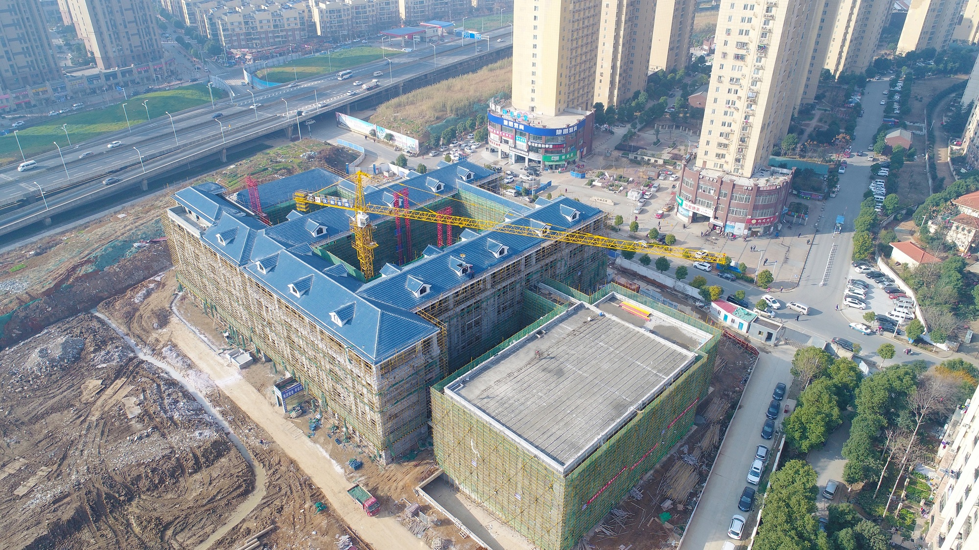 漢陽區(qū)芳草中學施工工程,坐落在楊泗港快速通道與龍珠路交匯處附近,毗鄰南國明珠小區(qū),由漢陽市政施工建設。自開工建設以來,項目部精心組織,周密籌劃,先后克服了大量出土、夏季高溫、大跨度房建結構施工、大坡度斜屋面施工等建設難題,同時在建設過程中始終不忘業(yè)主期盼,堅持美觀與實用兼顧,為此項目部在特殊部位采用了GRC密肋梁工藝,屋面瓦選材及施工過程中參考臨近高檔小區(qū)建筑風格,與周邊建筑群完美融合。