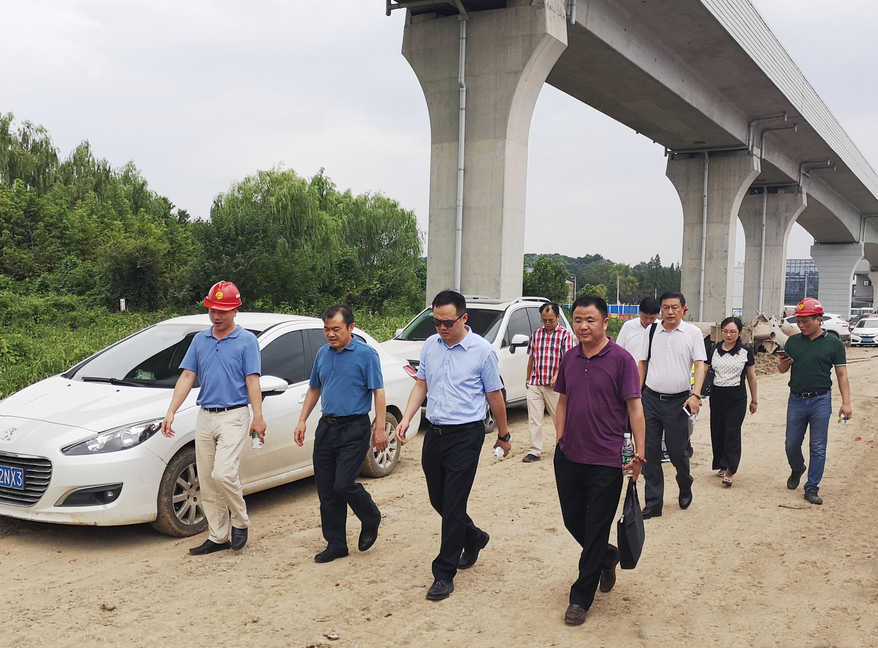814日下午,業主方武漢食品化妝品檢驗所所長江小明,代建方武漢地產集團旗下武漢市保障性住房投資建設有限公司董事長陳偉、總經理杜天軍等一行結隊視察了由博宏建設承建的武漢食品檢驗檢測中心建設項目,漢陽市政集團董事長嚴悌文,博宏建設董事長錢濤等現場陪同。