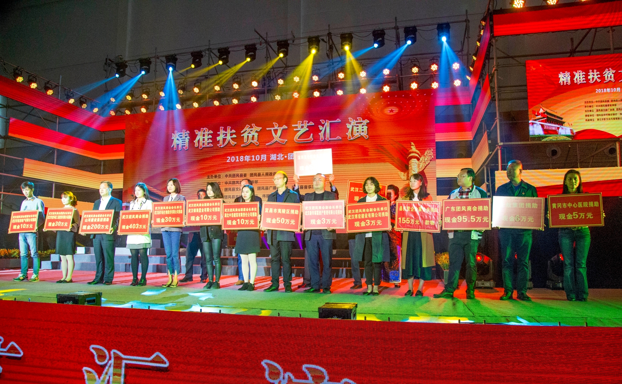 1023日正值全國扶貧日,為推進精準扶貧,幫助貧困人口脫貧摘帽,由黃岡市團風縣委、縣政府聯合主辦的“精準扶貧·愛心同行”眾籌捐贈暨文藝匯演活動在團風縣體育館正式拉開序幕,博宏建設作為國有建筑企業,同時也是武漢團風商會副會長單位,積極響應活動邀請并為當地貧困家庭獻上了一份愛心。