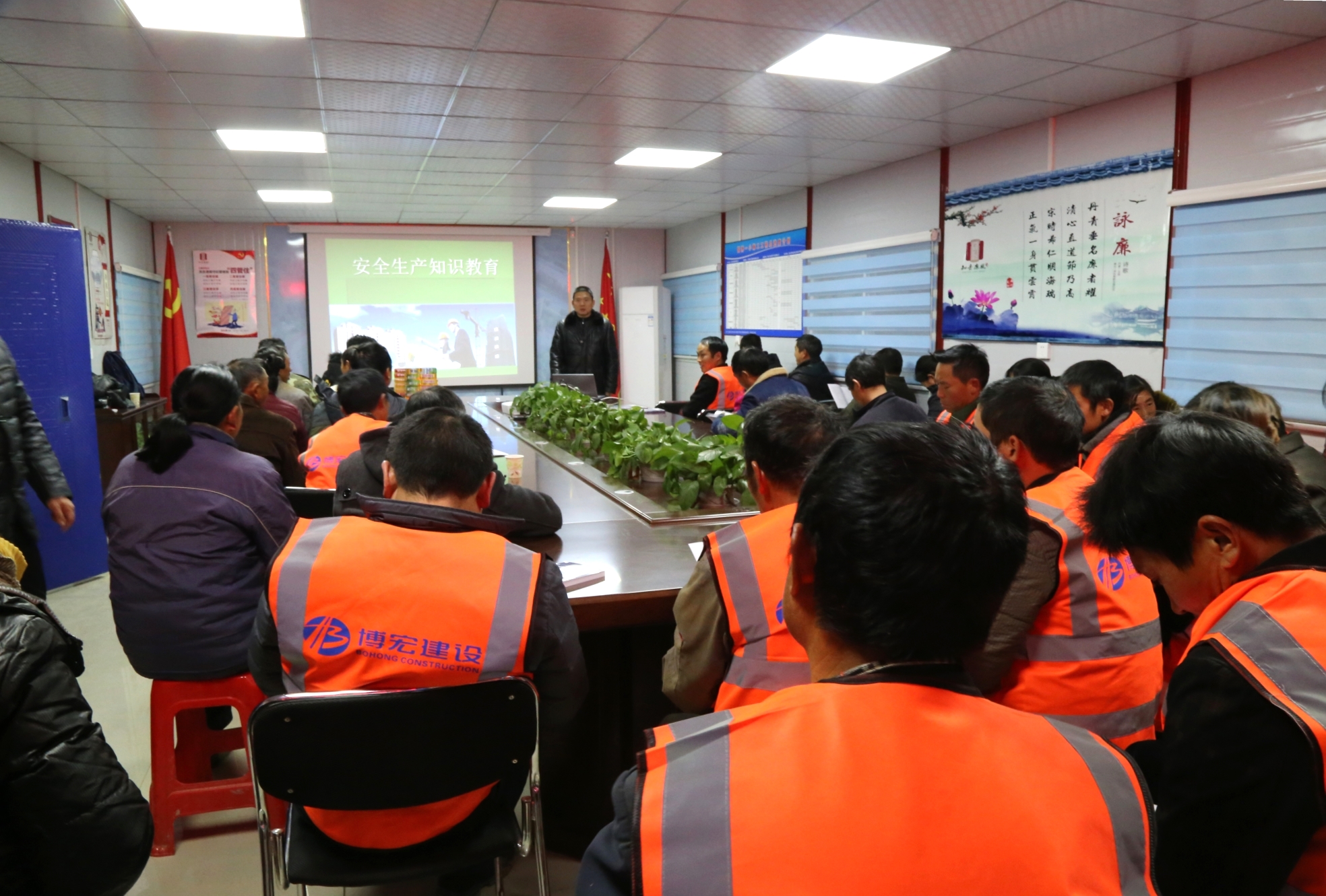 12月11日晚6點(diǎn),正值冬日嚴(yán)寒時(shí)段,武漢市建委、漢陽(yáng)區(qū)建管站新春“三送”活動(dòng)走進(jìn)武漢博宏建設(shè)有限公司國(guó)博一小項(xiàng)目工地,為一線(xiàn)農(nóng)民工兄弟送溫暖、送文化、送法律,漢陽(yáng)區(qū)建管站站長(zhǎng)李宏、集團(tuán)公司副總經(jīng)理邢榮斌出席此次活動(dòng),項(xiàng)目部及民工兄弟約50余人參與其中。