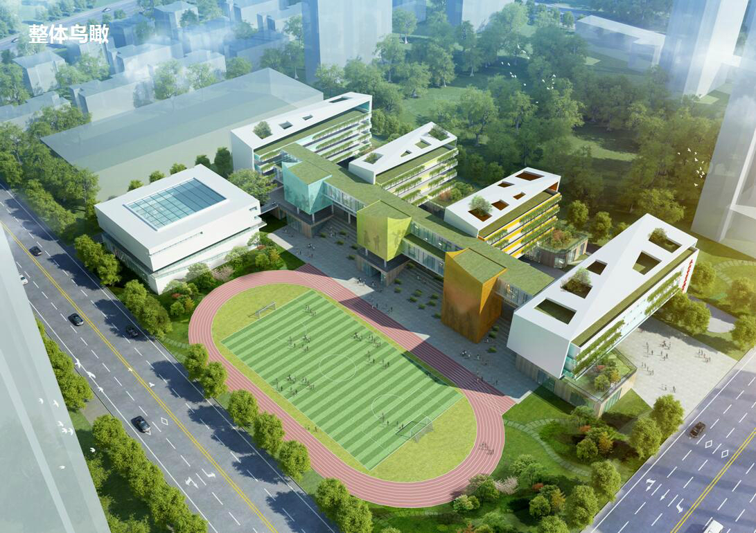 建設內容:六層教學綜合樓 1 棟,配套建設學校大門、道路及停車場、運動場地(含足球場、籃球場、羽毛球場、器械區、跑道等)、綠化等工程。