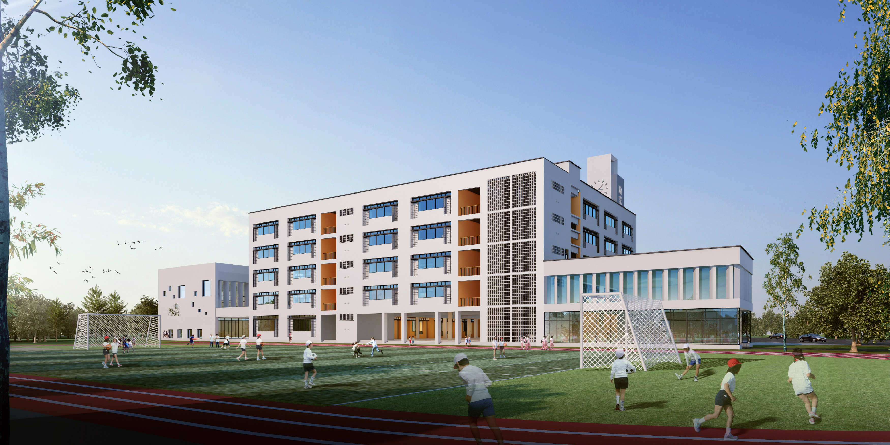 建設內容:1棟五層,局部兩層的集教學、行政辦公一體的綜合樓,1棟兩層集風雨操場、報告廳一體的綜合樓,同步建設室外環形跑道、6道直跑跑道、足球場、籃球場、羽毛球等運動場地,以及供配電、給排水、道路及綠化等配套設施。