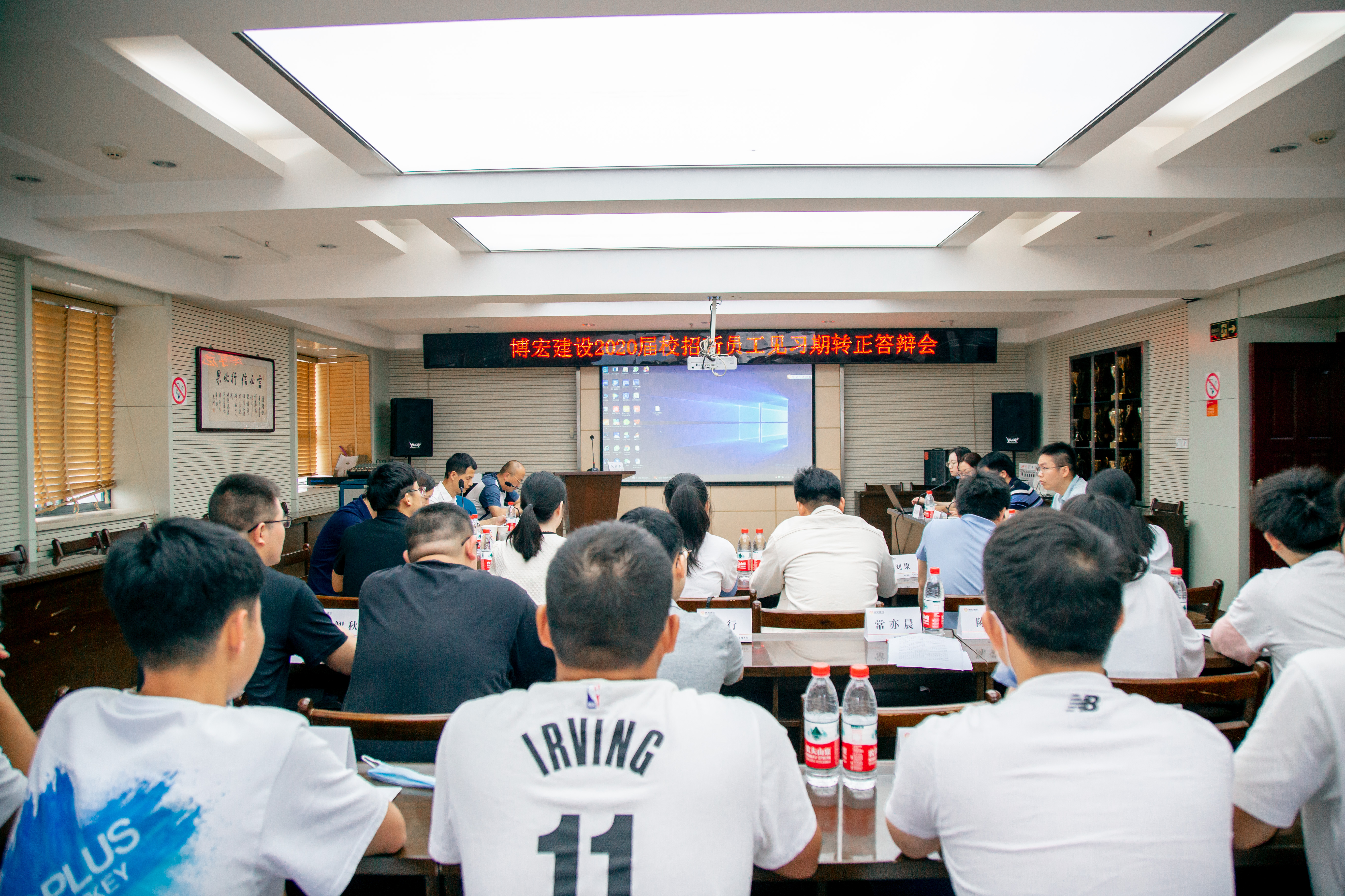 2021年6月10日上午,博宏建設(shè)2020屆見習期員工轉(zhuǎn)正答辯會在公司26樓會議室順利召開。公司黨支部書記、董事長鄒勇,總經(jīng)理蘇琦,黨支部副書記郭一清,副總經(jīng)理奚雷、辛桂華,各職能部門部長及18名見習期員工參加本次答辯。會議由人力資源部部長郭文婷主持。