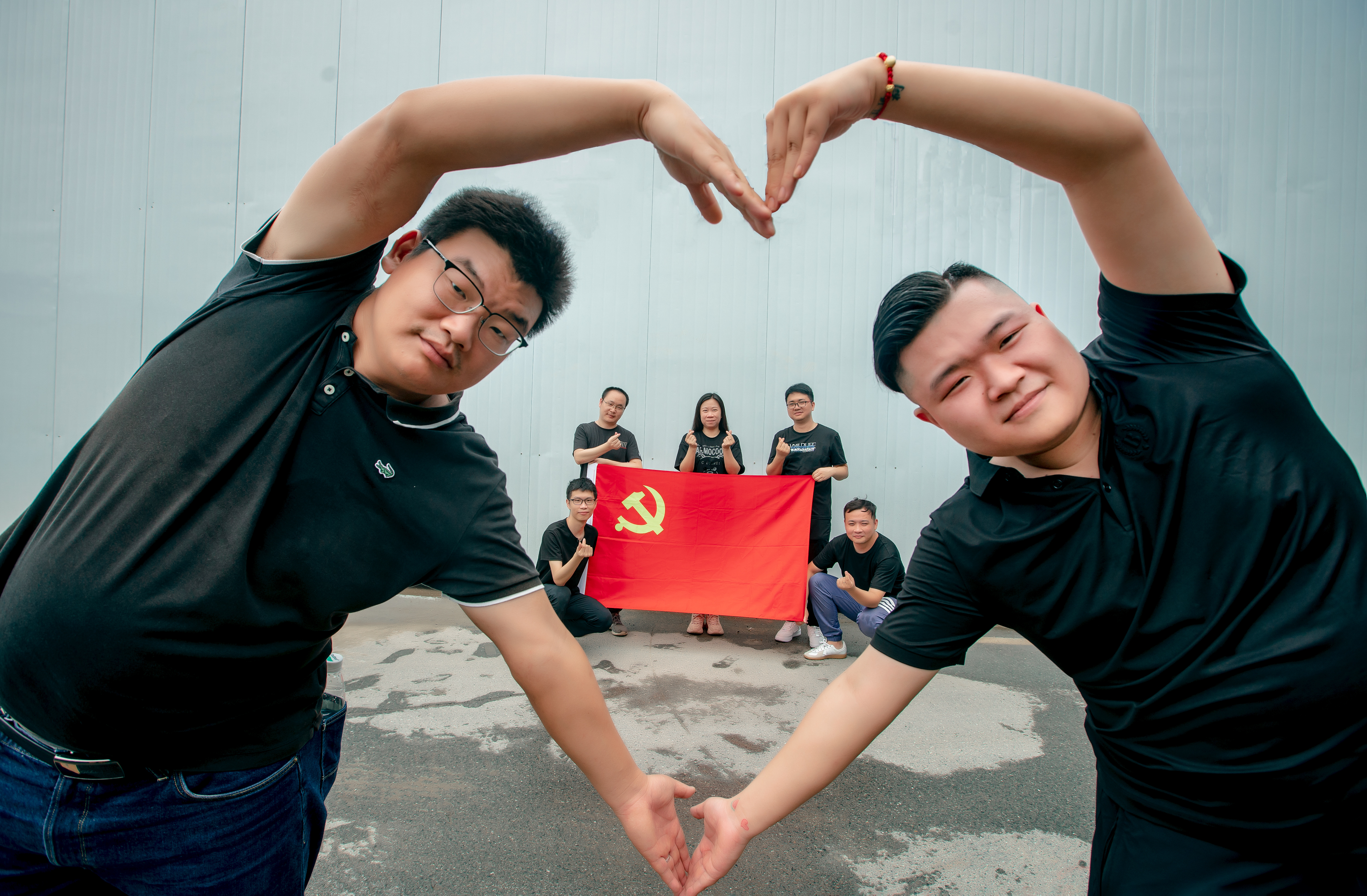 我和黨旗共合影,黨的光輝在我心。