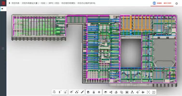 研究生期間彭迎研究的方向是BIM技術土建方向,但工作需要盡快上手的是BIM技術機電方向,一時讓她有點手足無措,“有問題先嘗試解決,辦法總比困難多”踏實肯干的她選擇了迎難而上,白天她跟著師傅們不厭其煩地穿梭于現場的各個樓棟,在工作過程中多看、多問、多記、多學,晚上回到宿舍,她通過閱讀大量BIM機電方向相關書籍以及上網課等方式自學相關知識,有時為了弄懂一個問題常常奮戰到深夜。從入門到逐漸架構起整個知識體系,彭迎經歷了半年的時間。在自學期間,她遇到了很多困難和瓶頸,但因為熱愛,從未想過放棄。“那段時間很累但是也很充實,每天都能學習到新的東西,讓我對機電的了解越來越深入,也越發體會到了BIM的魅力。看著自己繪制的BIM圖紙粘貼在了施工墻上,工人按照圖紙可以搭建出符合標準的砌體,心中的喜悅是無法用語言描述的。”回憶起那段時光時,她臉上總是帶著微笑。理論上的認真鉆研,現場中的建模實踐,彭迎的專業技術在不懈努力中愈見純熟,在負責總部大樓地上部分機電BIM工作過程中考取了BIM二級設備證,也和同事們一起獲得了多項國家級、省市級BIM獎項,熱愛與進取讓她一次次品嘗到了成功的碩果。