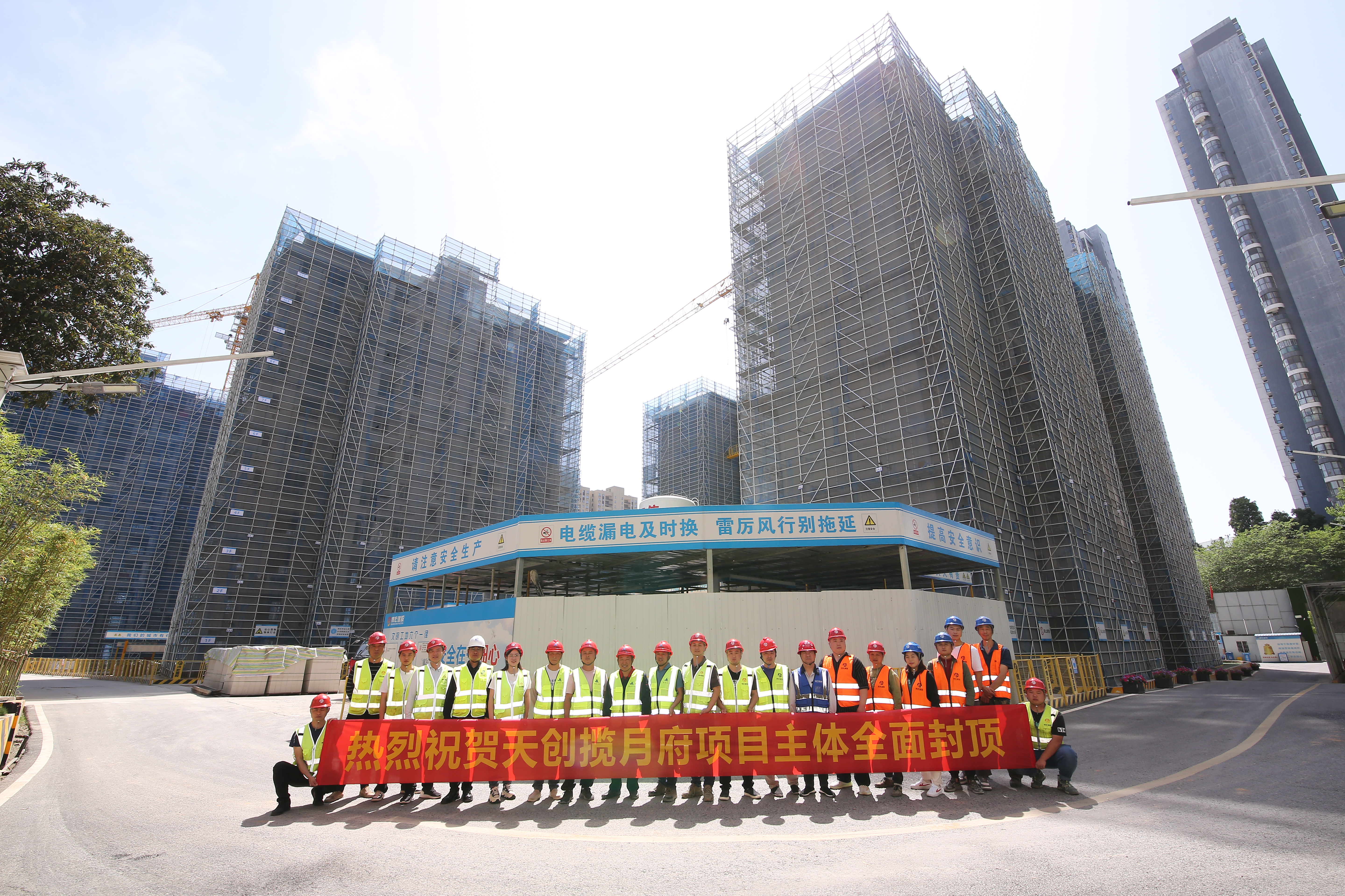 5月1日,隨著最后一車混凝土完成澆筑,宜昌天創攬月府項目第11棟主體結構封頂,標志著該項目所有建筑主體結構全部完成。