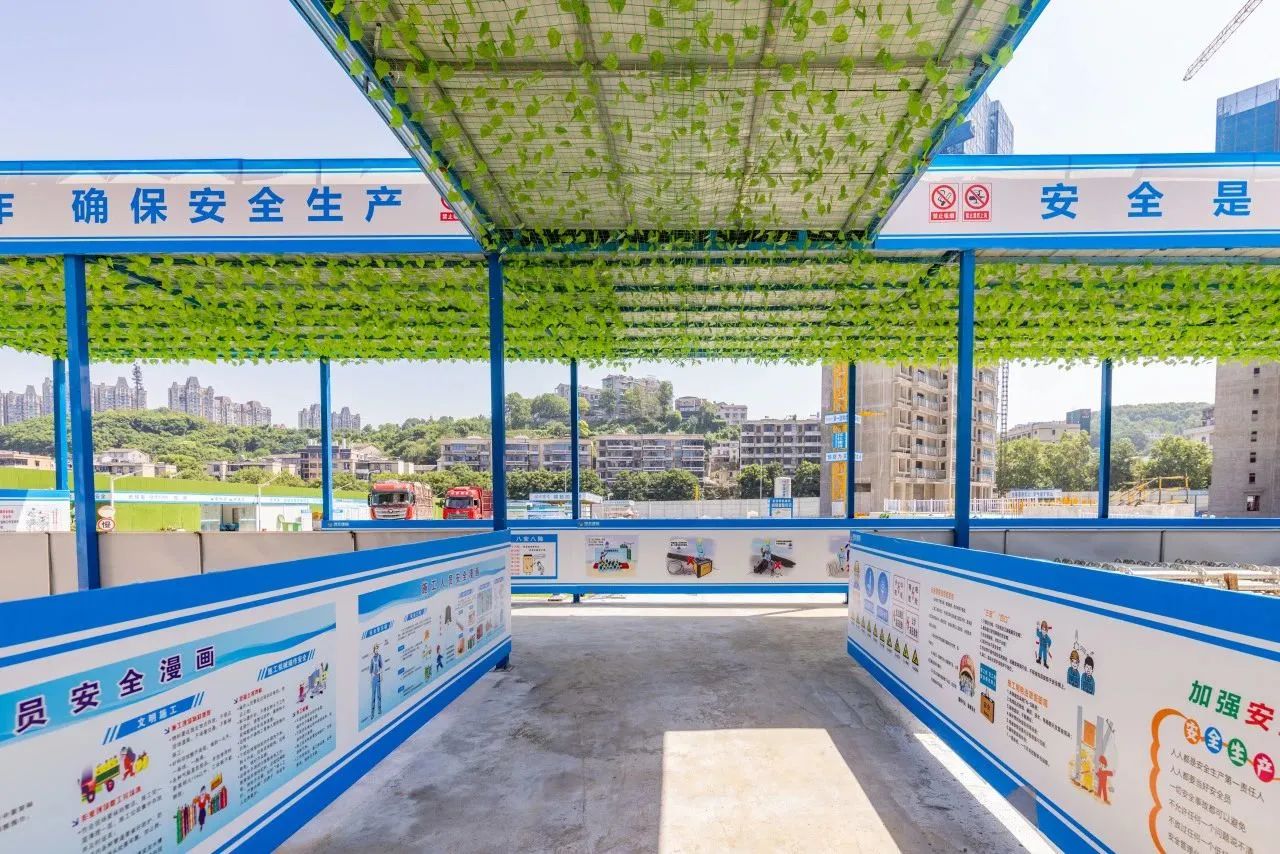 該項目嚴格貫徹落實“安全第一、預防為主、綜合治理”的安全生產方針,根據施工特點,樓棟出入口采用定型化裝配式連廊式安全通道,將各樓棟安全通道貫通連接,洞口臨邊采用定型化防護網片,同時利用塔吊吊鉤可視化應用技術、夜間施工監測等技術推進安全文明施工精細化管理,持續提升安全文明施工標準化水平。