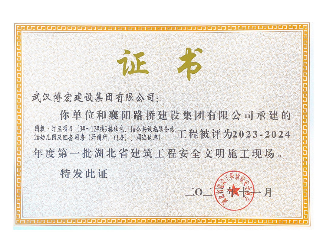 喜報!博宏建設集團8項工程斬獲“湖北省建筑工程安全文明施工現場”