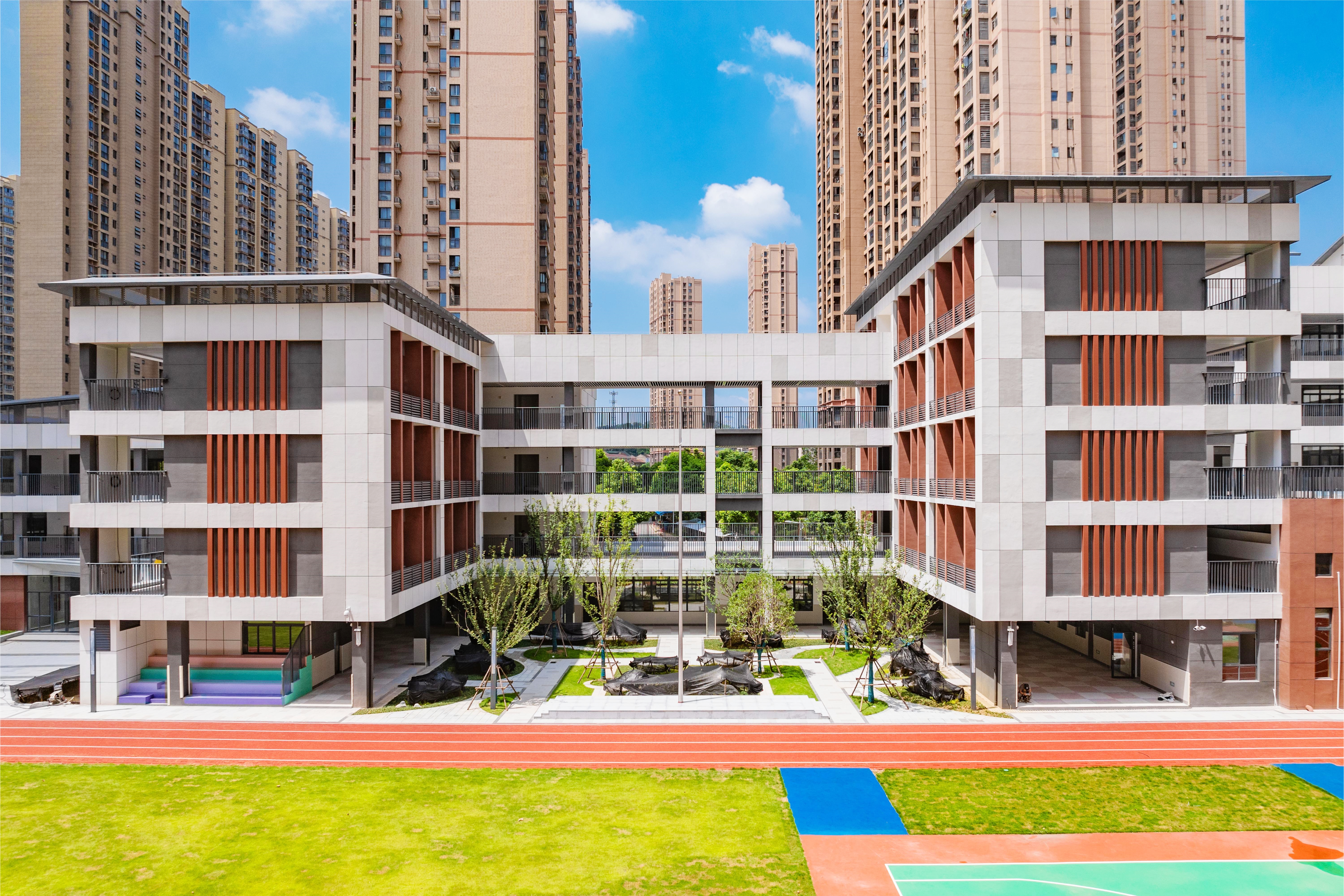 芳草小學(xué)北校區(qū)改擴建項目位于武漢市漢陽區(qū)龍陽大道與康達街交會處,緊鄰南國明珠小區(qū),東面為芳草小學(xué)北校區(qū)老校區(qū)。建設(shè)內(nèi)容包括教學(xué)用房、辦公用房、風(fēng)雨操場、食堂等。學(xué)校建筑、基礎(chǔ)設(shè)施和教育教學(xué)設(shè)備均按照標(biāo)準(zhǔn)化、科學(xué)化、現(xiàn)代化的要求建設(shè)和配備,滿足了學(xué)生德智體美勞全面發(fā)展的需求。校區(qū)內(nèi)苗木種類多,綠化覆蓋率廣,提供了良好的環(huán)境,利于師生課間活動。建成后將在一定程度上緩解學(xué)校教學(xué)設(shè)施不足、區(qū)域教育資源緊張的現(xiàn)狀。